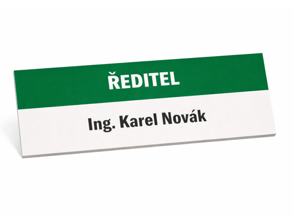 Cedulka se jménem na dveře nebo vedle dveří kanceláře. Možnost individuální úpravy. Standardně výška písma 1cm.